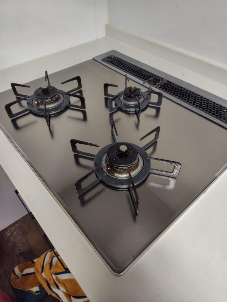 瓦斯台がかなり油で汚れていたので掃除をしました。