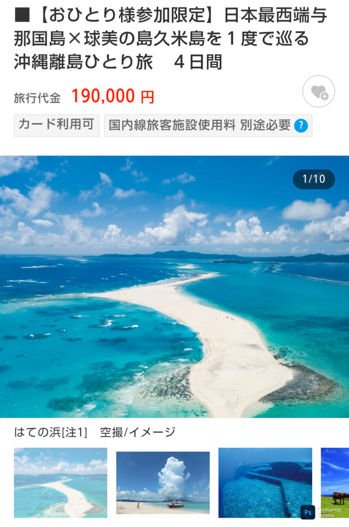 おひとり様でこの価格なら頷けますし、自分ひとりだと離島巡りなんて計画できません。