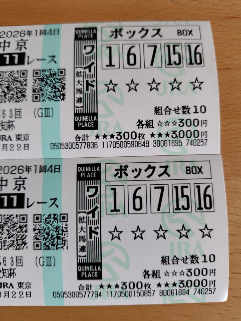 ワイドと3連複のボックス5頭を買うつもりがワイドを2枚買ってしまいました。