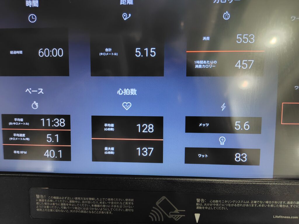 今日は、時間ではなく距離にして6kmに設定しました。60分だとおおよそ距離は、5kmを越えるくらいです。6kmに設定すれば60分以上有酸素運動が出来ると考えたからです。
