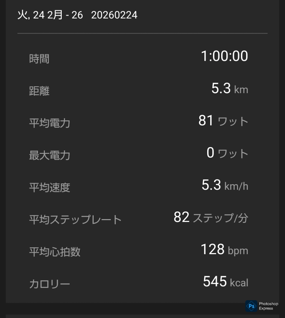 昨日のスポーツジムでの有酸素運動の結果です。