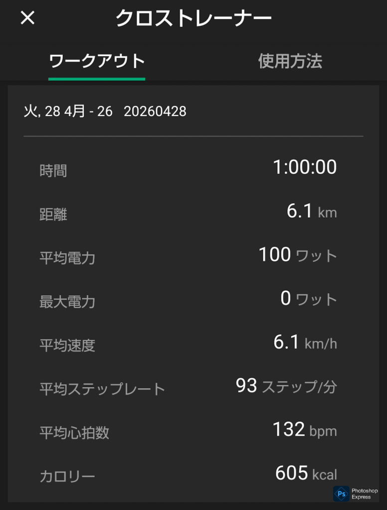 消費カロリー 3(回)×564kcal=1692kacl 1500~2000kcal/週程度の範囲内 OK