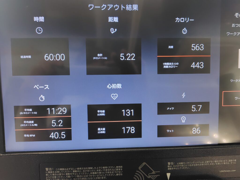 でいつものようにクロストレーナーを使って有酸素運動を60分。