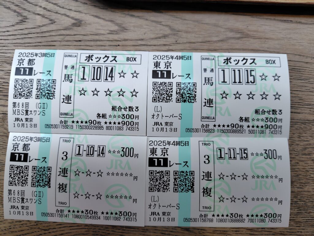 調教が良さそうな馬を上から3頭選んで馬券を購入。人気は、度外視。