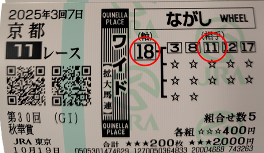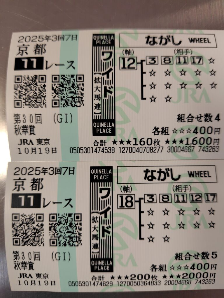立川ウィンズに立ち寄って、昨日の秋華賞的中馬券を換金しました。